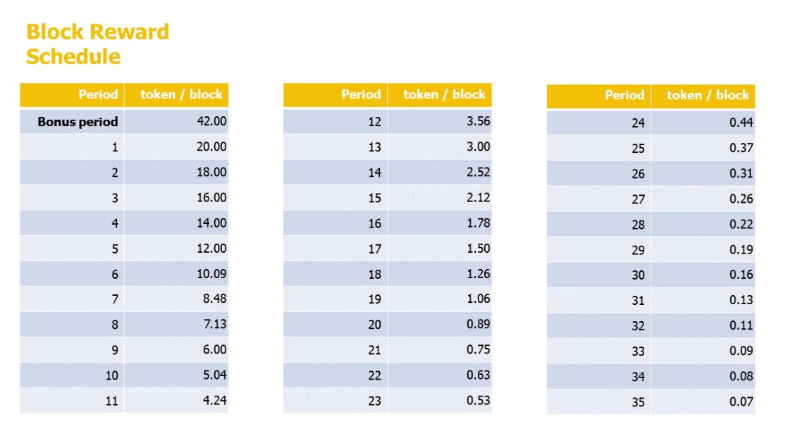 Insgesamt wird es 159.500.000 KANINCHEN geben. Um Anreize für Early Adopters zu schaffen, gibt es in den ersten Wochen eine Bonusfrist. Unten finden Sie unseren geplanten Blockbelohnungsplan. Darauf basierend kann das Profil der zirkulierenden RABBIT-Versorgung aufgezeichnet werden.